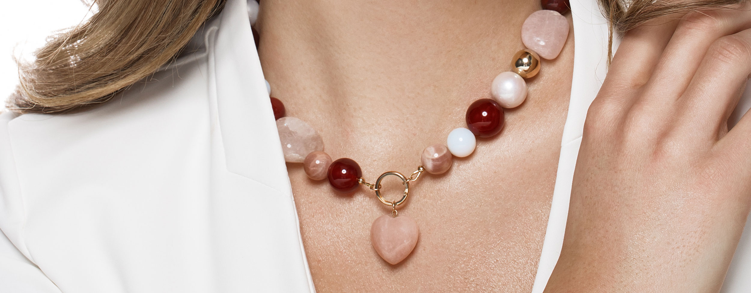 Gold filled, carneool (kornalijn), maansteen, tijgerijzer, rozenkwarts, angeliet