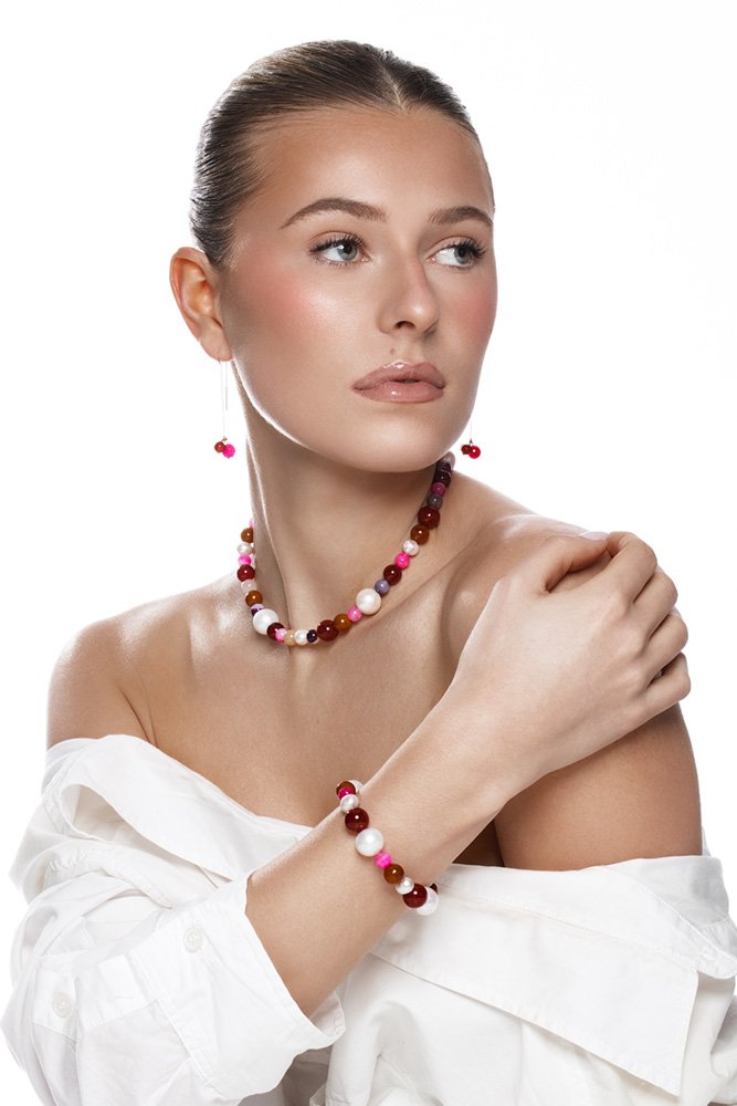 Agaat staat voor balans, stabiliteit en innerlijke rust, terwijl carneool (kornalijn) energie, moed en creativiteit bevorderd. De zoetwaterparels geven een zachte, elegante glans en symboliseren zuiverheid en verfijning.